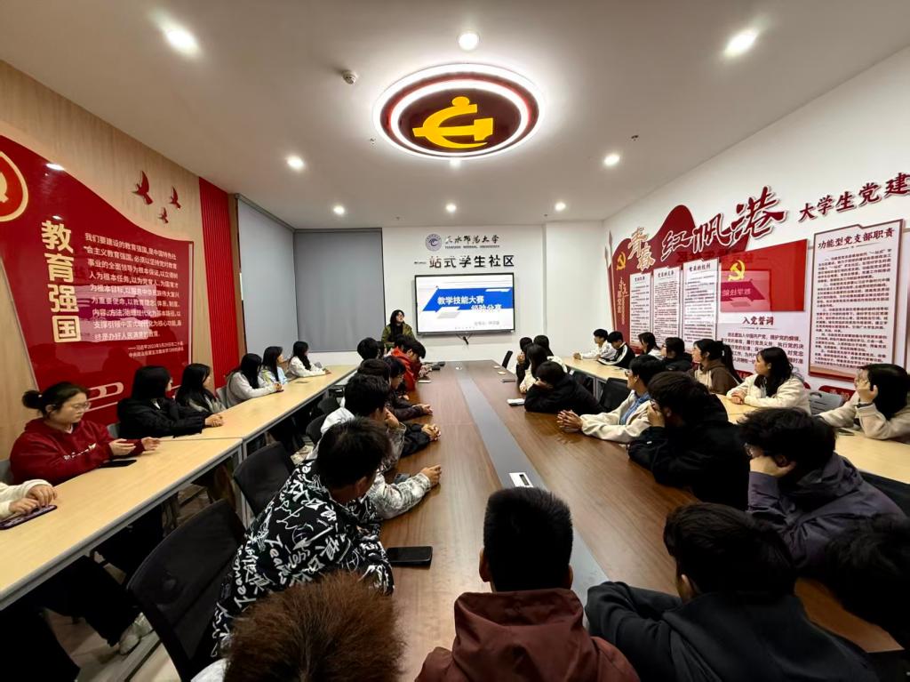 10月23日,由党委学生工作部主办,beat365官方网站承办的“朋辈思政共学课堂”在“一站式”学生社区举办。beat365官方网站在全国大学生数学竞赛、全国大学生数学建模竞赛、高校师范生数学教学技能竞赛中获奖两名学生与四十余名学生代表一起分享交流参赛经验。