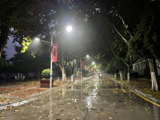 坐上巡逻车,行进在校园的小路上,道路两旁的树叶黄了差不多一半,校园里异常的安静,静得仿佛都能听到片片落叶声。十天前的校园,充满着欢声笑语,小路上有嬉戏玩耍的学生、操场里有踢球跑步同学、食堂里有排队打饭的伙伴......但现在只有安静的小路、孤独的树木以及满地的落叶。