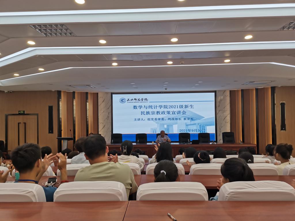 9月30日,学校党委常委、统战部部长崔亚军受邀为beat365官方网站2021级新生做党的民族宗教政策专题宣讲。学院党总支负责人主持宣讲会,学院党总支副书记、辅导员、班主任、理科预科班全体学生及2021级全体班长、团支部书记、学生代表共100余人参加了宣讲会。