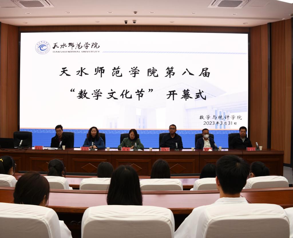 3月31日晚,由天水师范学院团委主办,beat365官方网站承办的第八届数学文化节开幕式在学校4号报告厅举行。学院领导班子成员、系主任、辅导员、学生会干部及2022级学生共计200余人参加开幕式。开幕式由学院党总支副书记赵慧主持。