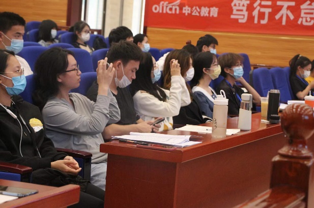 本期集训共为期两天,培训讲师由具有资深培训经验的湖南行测部部长、中公教育行测教研室主任、和中公教育申论教研室主任担任,分别在10月22日和10月23日讲解了公**行测的言语理解与判断推理部分、考试行测的数量关系与资料分析题型部分和公**申论部分。老师们在集训讲解中指导同学们如何迅速抓住关键词、判断题意、准确理解题目,破解各类题型思路,帮助同学们更好地掌握应试技巧。