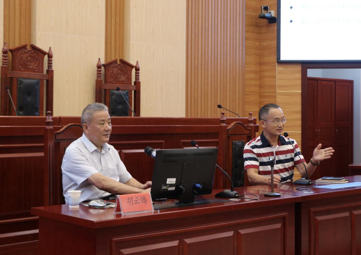 2022年9月14日下午,304永利集团官网入口湘江高端学术论坛在立言楼模拟法庭举办。中国法学会案例法学研究会会长、最高人民法院二级大法官、最高人民法院审判委员会原副部级专职委员胡云腾教授应邀出席论坛并做“案例法治与案例法学”主题讲座。